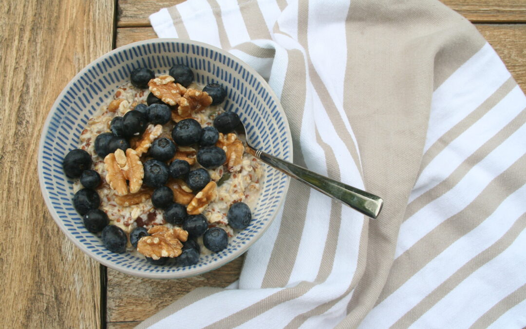 Het recept was bij iedereen die het uitprobeerde zo geliefd en het is zo makkelijk te maken, dat ik het graag met jullie deel. Eigenlijk kun je het eten met al het fruit dat je lekker vindt, maar mijn favoriet is bosbessen en banaan of ander zacht zomerfruit. Ook heerlijk met wat walnootjes als extra topping.